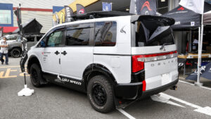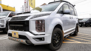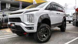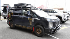 オートフラッグスブースはデリカにこだわり続けて人気を博しているオリジナルパーツを装着した、デリカD:5のデモカーを展示。