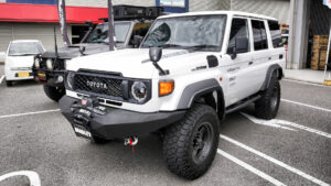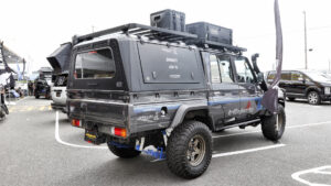 4×4エンジニアリングサービスのブースは、GDJ76とGDJ79の2台を展示。BRADLEY、カントリーサスペンション、オリジナルバンパーなどを装着したデモカーだ。
