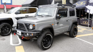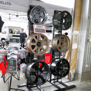 愛知県に本社を置く4×4エンジニアリングサービス、大阪で自社設計。自社生産を行なうX‐Fang、北九州で誕生したオートフラッグス、数々の人気アイテムを世に送り出したランドリックなど、人気のサプライヤーのデモカーが並んだ。
