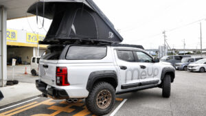 高品質かつ高性能な自社開発パーツで人気のX-Fang。デリカD:5用の豊富なオリジナルパーツを装着した、スタイリッシュなデモカーを展示。同じくデリカカスタムを得意とするランドリックは、アンダーガードにマーカーランプをビルトインした、新しいデザインのスキッドプレートをメインに披露。ディーラーでの取り扱いアイテムも数多いコルトスピードもデリカD:5を展示。スタイリッシュかつリーズナブルなオーバーランドギアをリリースするMELLOW.UPはトライトンを持ち込んだ。