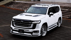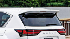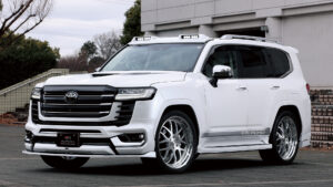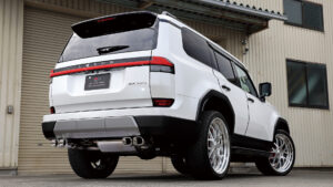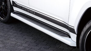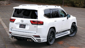 レクサスLXと同様に、ランクル300にも専用のアンダーウイングをラインナップ。さらに軽量なエアロボンネットも新たにリリース。エンジンルーム内の熱を排出にも効果がある。さらにフロントと同テーマでアンダーウイングテイストにデザインされたリアハーフスポイラーやサイドステップに被せることでエレガントな印象に一変できるサイドステップエクステンション、純正よりひと回り大きくスポーティ感をアップさせたルーフスポイラーといったボディパーツを設定。