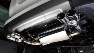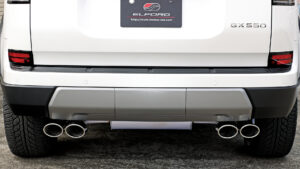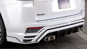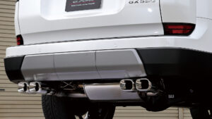 またマフラーも同様で、ノーマル用のアイテムのみを生産するのでなく、個々のユーザーの要望に沿ったモデルとして例えば〝ブラック〟仕様なども提供。さらにノーマルだけでなく、エルフォードエアロや純正エアロ装着車にも適合する細やかな配慮はありがたい。