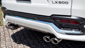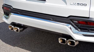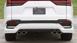 お好みに応じて2種類のエンド形状が選べる、エルフォードの4本出しマフラー。ノーマルバンパー用とエアロ装着車用でフィニッシャーの出幅を変えるなど、きめ細かなラインナップを展開することであらゆるユーザーの要望に応えている。現在、レクサスLX、GX、ランクル300、250用をラインアップするが、車種別に専用設計を施しているのは言うまでもない。なお、ランクル250には片側2本出しマフラーも設定しており、こちらのモデルにはポリッシュ仕上げだけでなくマットブラックにペイントされたモデルも用意されている。