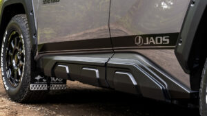 ランクル250と同様に、一部トヨタディーラーで購入できる新型RAV4 ADVENTUREのオフィシャルなカスタムを提案しているジャオス。その“JAOS style”のカスタムパーツのラインナップは幅広く、エクステリアから実用性重視のアイテムまでを展開し、ラギッドな造形とRA4Vの冒険心を視覚的にも機能的にも引き上げている。さらにリフトアップサスペンションもジャオス販売のパーツとして用意し、スタイリングと走破性を両立させている。