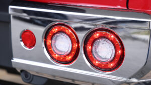ルックスはクラシカルな角目だが、灯体はLED。自動車メーカーも採用しているKOITO製なので、耐久性や信頼性も高い。またリアバンパーの丸形テールランプもLEDとなっており、レトロ感と先進的な印象を融合している。