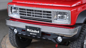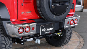 『N’s Limietd Beas+L BODYKIT LINE』の最大の特長はフロントマスク。角目のヘッドライトと繊細な造形のグリルでクラシカルなイメージに変更している。またバンパーはメッキ調で、4WDらしい力強さをアピール。その上でフォグランプも装備する。グリルやバンパーにメッキパーツを配することでレトロフューチャーが全盛だった1960年代のアメ車のような雰囲気に仕上げている。