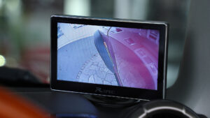 3インチアップともなると、リフトアップと同時に装着しなければならないのが直前直左の視認性を確保するためのカメラとモニター。これがないと車検不適合となる。ただ取付けるだけでなく配線処理などに細かな規定があるのでプロに依頼して対応してもらうのが安心&確実だ。