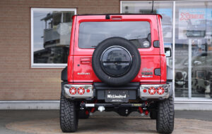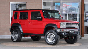 そんなエヌズリミテッドの最新モデルが、ジムニーノマドをベースに街中で映えるスタイリッシュなエクステリアとリフトアップを施した『エヌズリミテッド・Beas+L BODY KIT LIEN(ベアスプラスエル・ボディキットライン)』。角目のヘッドライトや丸いテールランプ、そしてメッキパーツで身を包んだまるで60年代のアメ車のようなクラシカルなイメージを与えており、サスペンションの交換によって、走行性能でも優れたスペックとなっているのが特長だ。