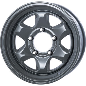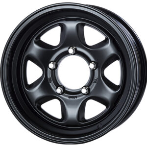 アールを取り込んだ緩やかな造形や絶妙な太さと長さの6スポークによって、あの頃のスチールホイールのデザインをオマージュ。そこにコンケイブフェイスという現代的トレンドを加えて、無骨で力強い彩りを与えた。今回のジムニーシエラ専用サイズはセンターキャップレスだが、純正センターキャップもそのまま装着可能。さらに往年のスチールホイールを彷彿とさせるコダワリのディーテルとして、ステップリム形状やスポークとリムフランジが交差するリムエンドに凹んだ意匠を与えていることもポイントだ。