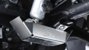 オフロード走行時でヒットしやすい下回りを守るガード類も充実。デモカーはタンクガード・トランスファーガード・アームプロテクター&ダンパープロテクターなどを装備していた。それぞれ本体は高品質な2.5㎜厚のステンレス製となる。