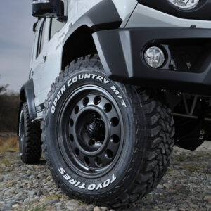 新開発されたホイール『ジャオス・トライブ』は、ノマド&シエラ用の新サイズ16×6.0J±0。JAOSがエンケイとタッグを組んで開発したタフなオフロードホイールだが、それと相性がピッタリのタイヤとして、オープンカントリーM/Tを選んでいる。
