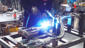 エルフォードのマフラーは国内の自社工場で、匠の手でよって1本ずつ製作される。装着時の細かな調整のしやすさも重視し、「美しさ」にもこだわったマフラーなのだ。