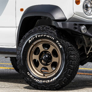 ジムニー専用設計のTE37XT For Jは圧倒的な強度と軽量化によりジムニーの走りの性能を最大限引き出すホイールだ。最適なインセットと形状はジムニーシリーズごとに設定され、この技術はVOLK RACINGだからこそ実現可能な技術。ディスク外周にブランドロゴを刻印することで存在感を高め、ホイールデザインのアクセントとなっているのも見逃せない。