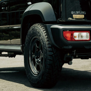 それぞれのジムニーには最適な形状とサイズを設定。性能はジムニーシリーズに求められる以上の強度と軽量化が施され、シーンを問わず力強い走行を実現する。そんなTE37XT FOR Jから新たに限定カラーが登場。マットトランスルーセントブラックカラーはブラックシャドウLTD.の特別仕様色であり、ホイール全体はダークな表情で足もとを引き立てつつ、光の当たり具合によってキラリと輝く表情を見せる特徴がある。この特別な黒でジムニーの存在感を強めることでジムニーシリーズの新たな世界観を演出できる。