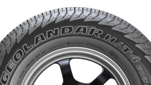 GEOLNDER(ジオランダー)のハイウェイテレーンタイヤとして10年ぶりにモデルチェンジした『ジオランダーH/T4』。先代と比べて耐摩耗性やウェット性能、静粛性能が大きな進化を遂げているのはもちろん、電動車(EVやハイブリッド車)に対応する“E+”マークが打刻されたこともトピックスだ。高荷重・高トルク出力が特徴の電動車に対して、タイヤにはそれに相応した剛性や耐久性が求められる。また静粛性の高さや走りの滑らかさといった電動車の良さを損なってもいけない。つまり“E+”への条件は難しく、それだけ『H/T4』は進化したタイヤである、ということだ。