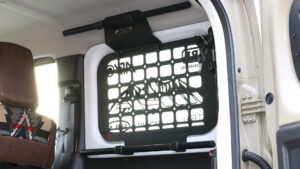 ノマド専用のサイドストレージパネルは、3枚目にあたるリアクォーターガラスに対応したサイズだ。小さくても効果や強度は変わらず。ほかのストレージパネルと同様に金属製なので、M8ボルトだけでなく、マグネットなどを使用して小物を吊り下げられる。