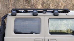 シエラには全長1400㎜のEXPルーフラックタイプA(EXR-01)を搭載。側面と後方には、ライトバーブラケットを使用して2インチシングルLEDのワーキングランプをセット。またラック前方にもIPFのLED40インチライトバーを装着。