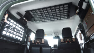 日本でも定着したオーバーランドスタイル。最近は外装だけでなく内装も重視され、車内の頭上空間を有効活用するのもひとつのトレンドだ。また左サイド、ルーフ、そして右サイドまでをぐるりと囲むように連動させることで、見た目にもヘビーデューティになる。そこで役立つのがIPFが展開するストレージパネル類。細々したアイテムやすぐに取り出して使いたいギアをモールシステムなどを使って積載することが可能。車内に積んだアイテムからウインドーをガードする機能も備わる。