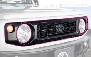 JB64用。PPウレタン製タイプ。KUHLの「Kエンブレム」付属。FRP未塗装品 45,980円(税込) 1トーン塗装品 73,480円(税込)。塗装のカラーは、エンブレム部分がマットブラックとクロームメッキ、ベースプレート部分がグレー、レッド、ブルーから選択可能。