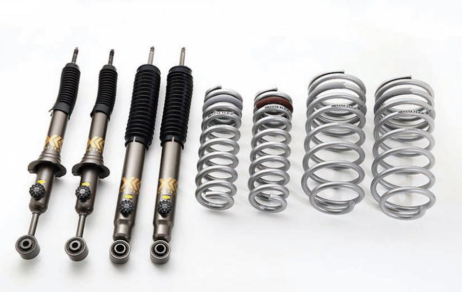 プラド 150系 ガソリン車用09.09 TX・TX-L(ガソリン車)用。フロント:ダンパー+ダウンコイル。リヤ:ダンパー+ダウンコイル。ヘタリ保証(コイルスプリングのみ)。ダウン量:2TR(2.7リットル)F/約30 35mm R/約35 40mm。1TR(4.0リットル)F/約35 40mm R/約35 40mm。141,900円(税込)