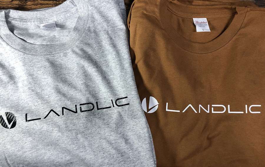 グレーとキャメルのカラーにカーボンとホワイトでプリントされたLANDLICロゴが映える1枚。サイズはM/Lの2サイズで展開。Mサイズ身丈70 身巾52 肩巾47 袖丈20。Lサイズ身丈74 身巾55 肩巾50 袖丈22。カラーはキャメルとグレー。3,300円(税込)