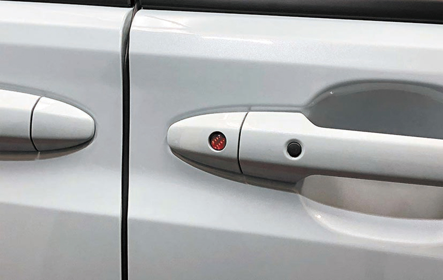 本カーボンシートでキーシリンダーをスポーティーにドレスアップ。イタズラ防止にも効果的。330円(税込)